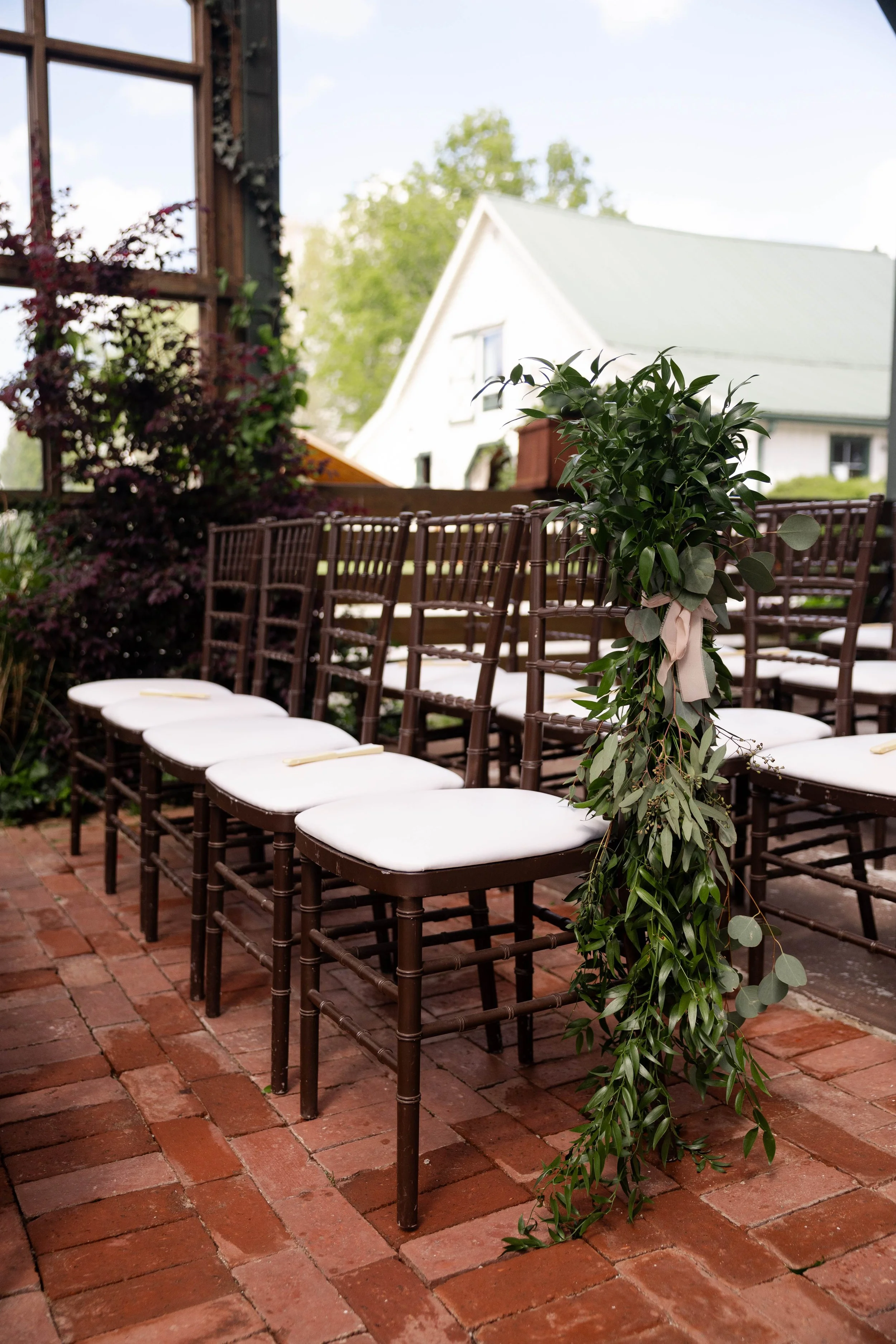 Guests found their seats along the aisle, where each chair was adorned with cascading greenery that added movement and texture to the space. As sunlight filtered through the conservatory’s windows, it cast a warm glow over the entire ceremony, making the moment feel intimate despite the grandeur of the setting.